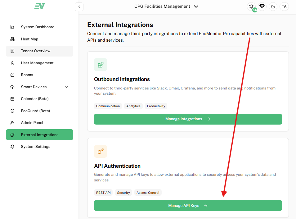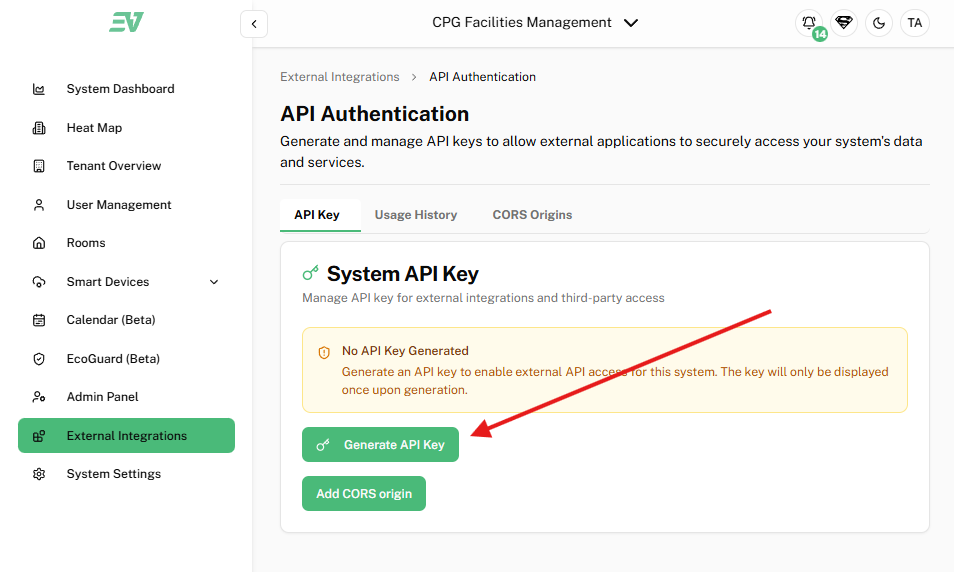 You need an active Ecovolt account to access the API and manage your authentication settings. API keys can be generated by both users and admins, but the level of access depends on who creates the key. Keys generated by admins have higher organizational permissions, while keys created by standard users are limited to their assigned access level. If your organization does not yet have an Ecovolt account, please contact our team to get started.