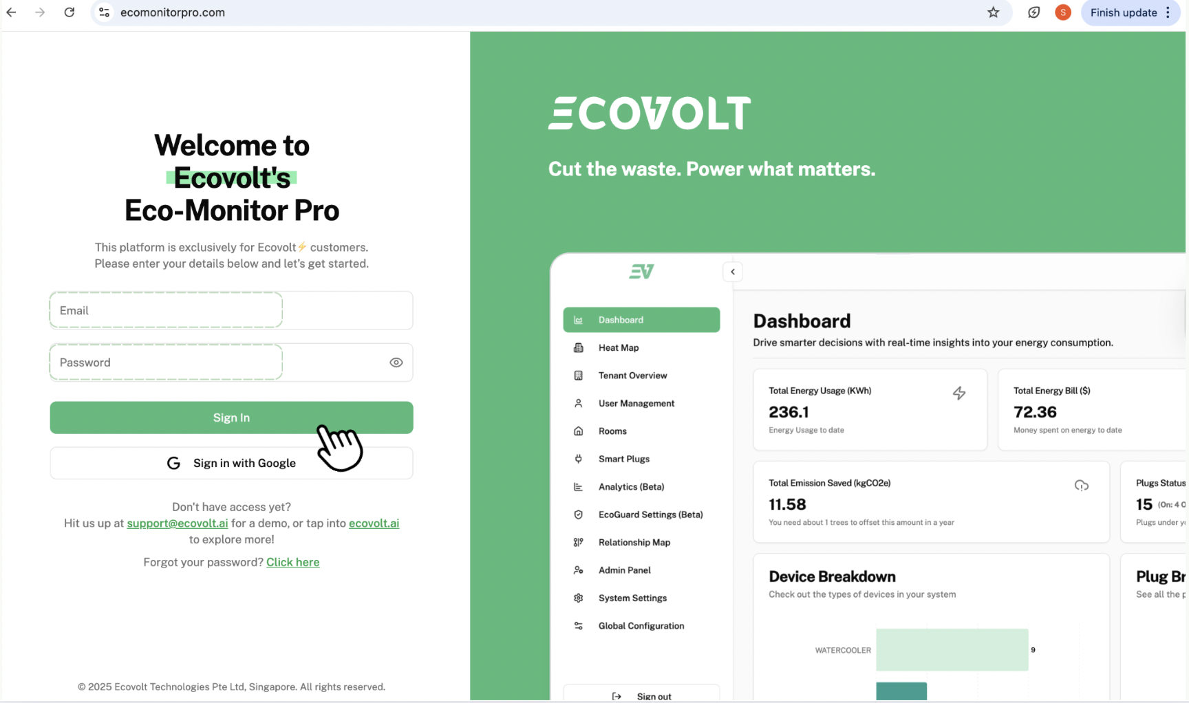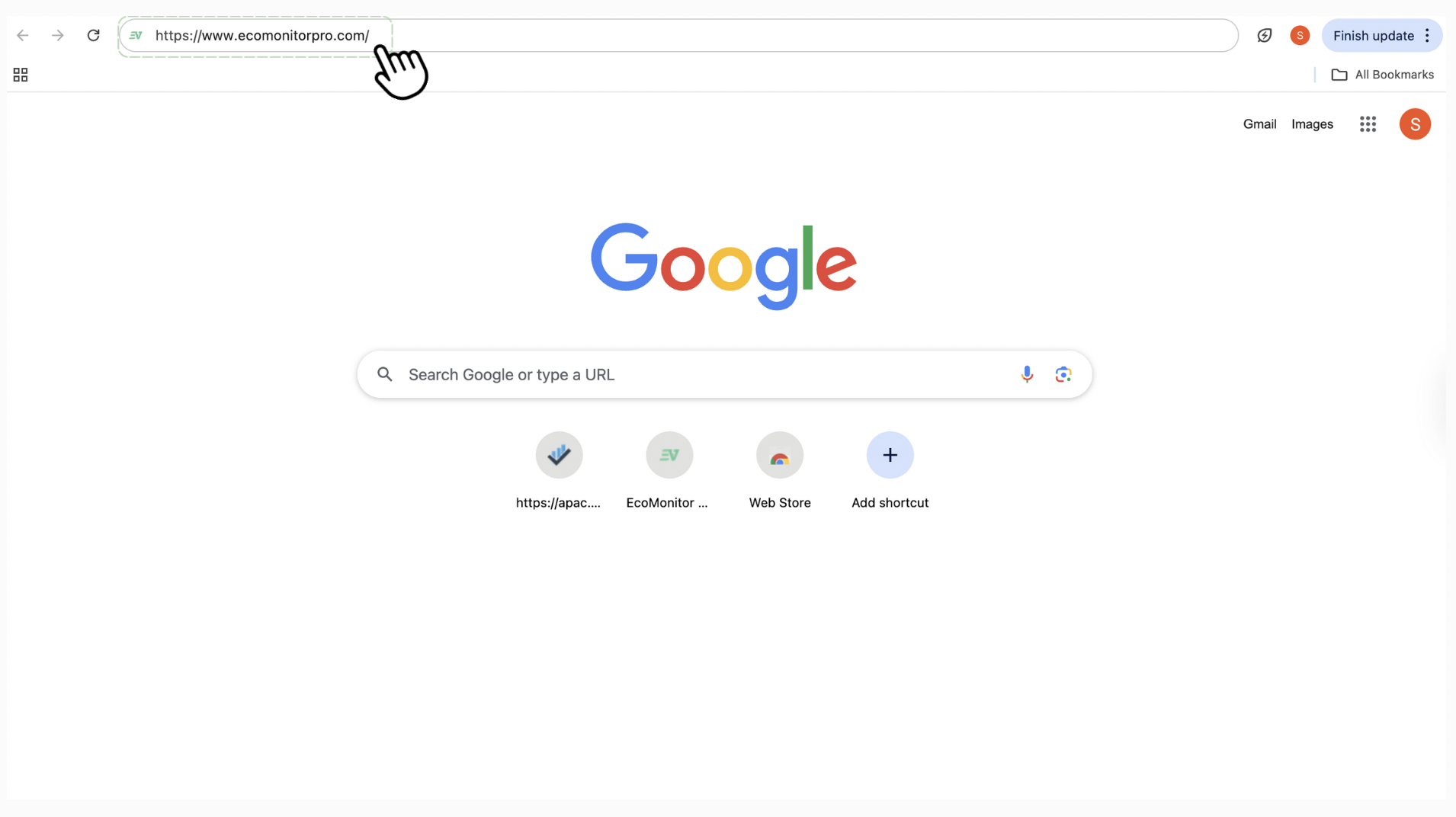 - Key in "https://www.ecomonitorpro.com/" in the top search bar